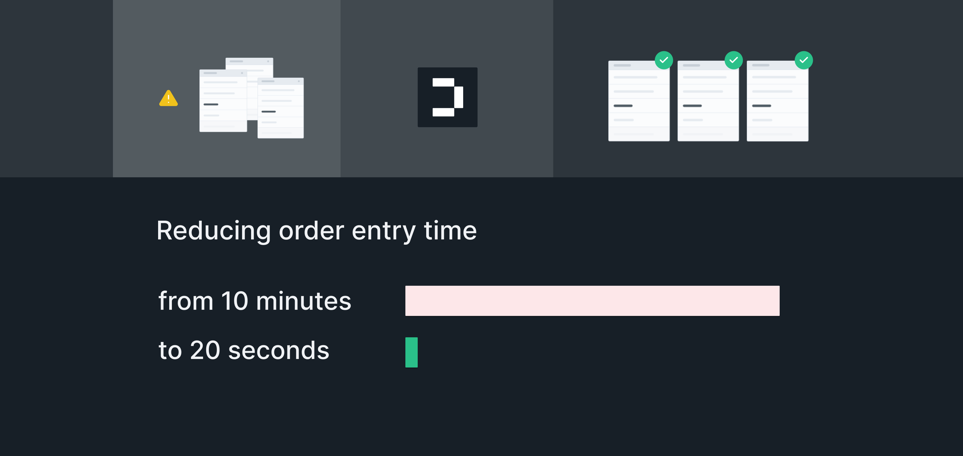The time it took to process one order dropped from about 10 minutes to 20 seconds—30x faster, while improving accuracy across fulfillment and forecasting.
