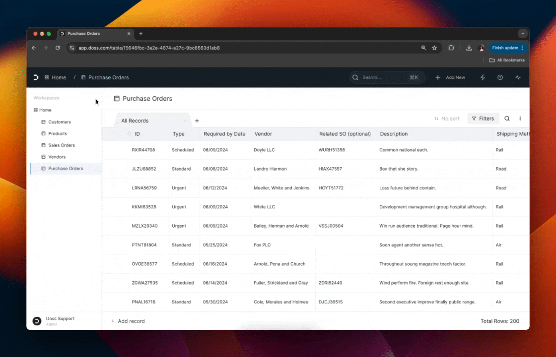 Tables and Workspace Navigation got a massive upgrade in DOSS 2.0. Whether you have a few products or tens of thousands of purchase orders, you can view and manage them in one seamless view or split them out between many customized views. Drill down with filters and get the bottom of your analysis with a powerful formula editor.